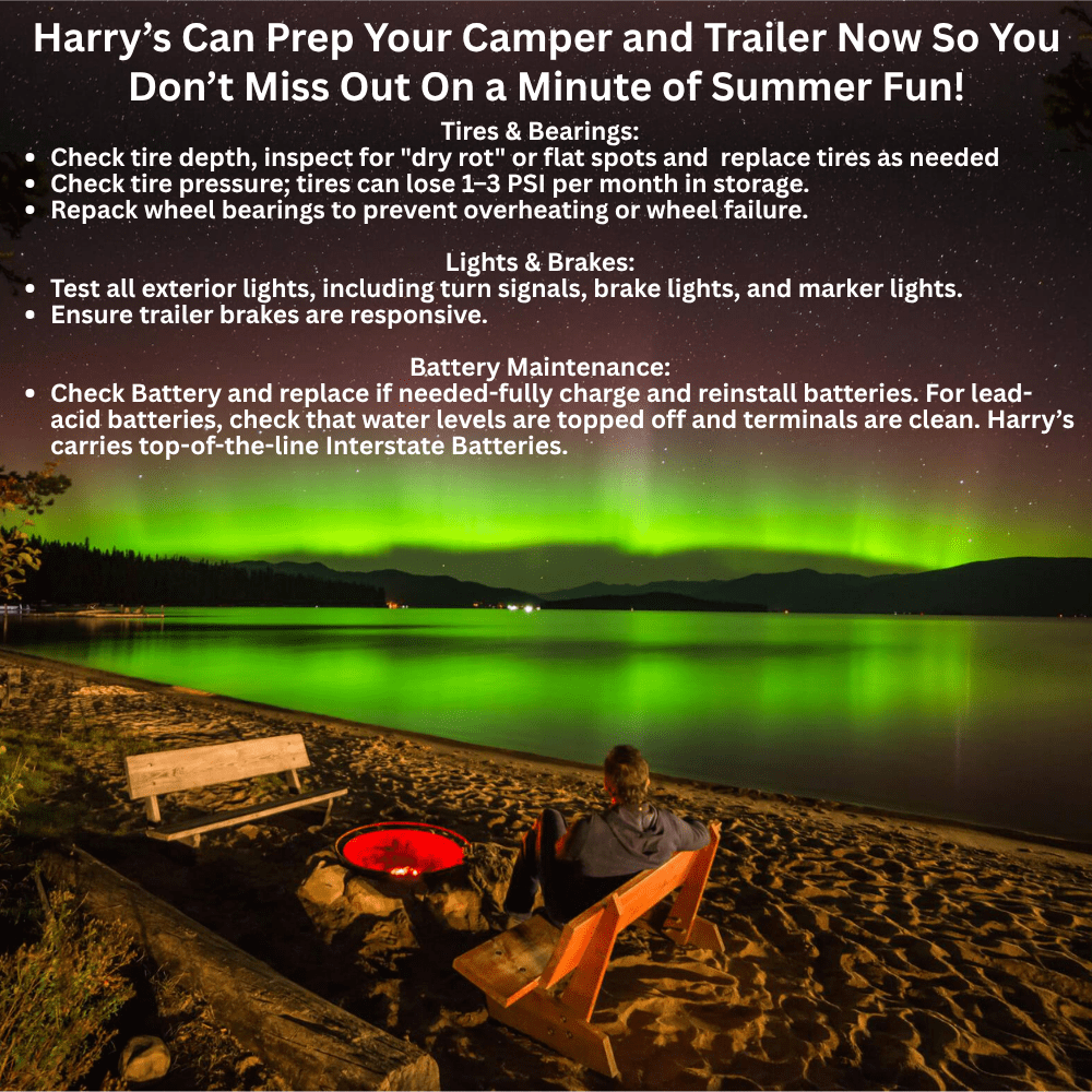 If you are heading out with a trailer, boat, or camper, we can also inspect tires, pack bearings, test lights and brakes, and handle battery maintenance so you are ready for the road.